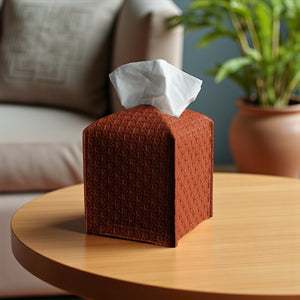 Elevate your home décor with the Rattan PU Leather Tissue Box Cover by ConnsoleCasa a perfect fusion of modern elegance and natural charm. Crafted from high-quality PU leather with a rattan-inspired woven texture, this square tissue holder adds warmth and sophistication to any room.